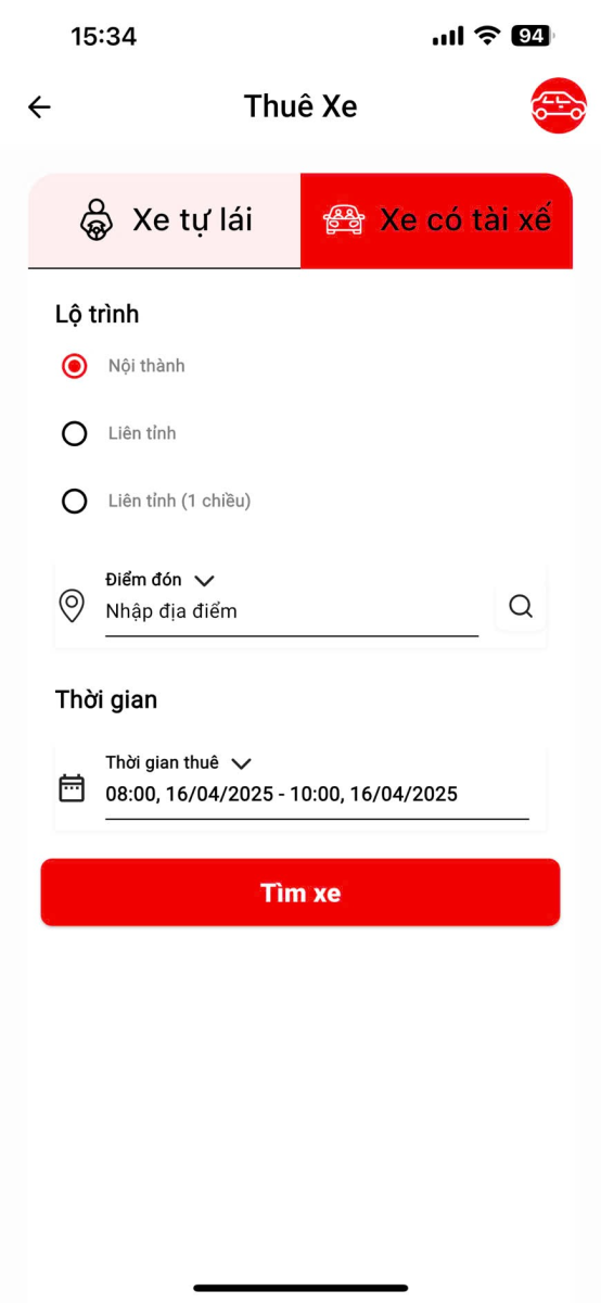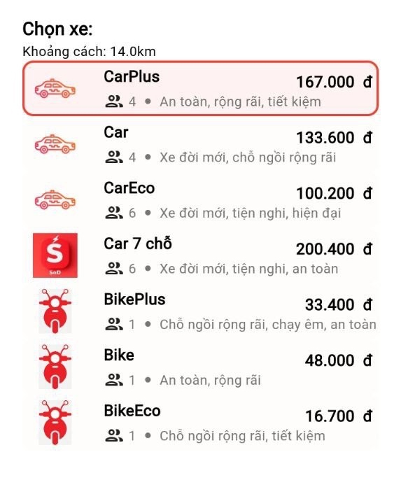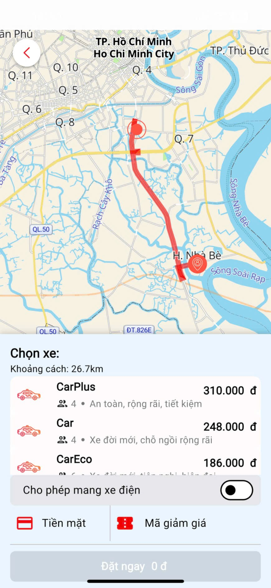 Ride-hailing is one of the core features of multi-service apps, offering convenience and flexibility for both intra-city and inter-provincial travel. With just a few taps, users can book a motorbike, a standard car, or even a luxury vehicle to suit their personal needs. The key highlights of the ride-hailing service include: