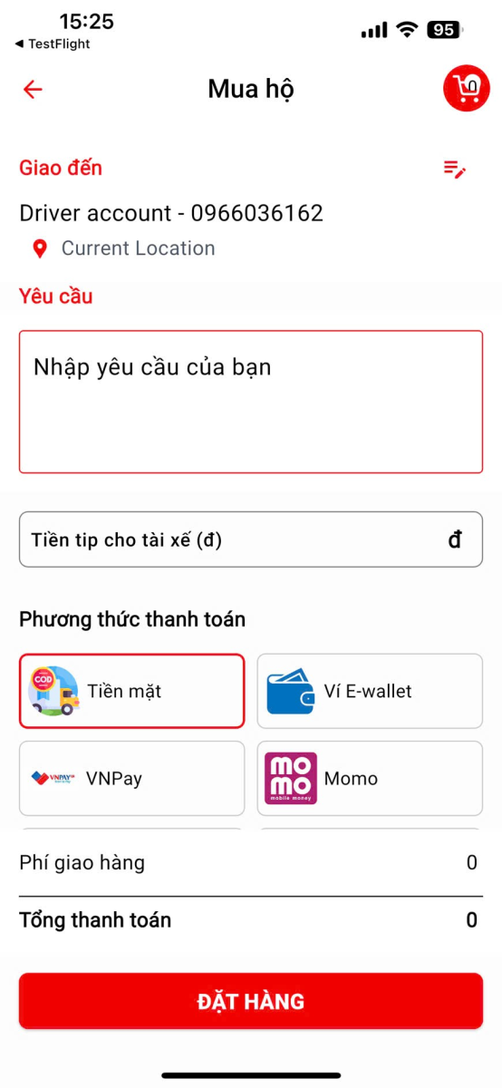 Personal shopping (or errand service) is a feature designed to help users save time when they need to purchase items such as groceries, medicine, or personal supplies. A driver will go to the store on behalf of the customer, purchase the exact requested products, and deliver them directly to their door. Key features of the personal shopping service include: