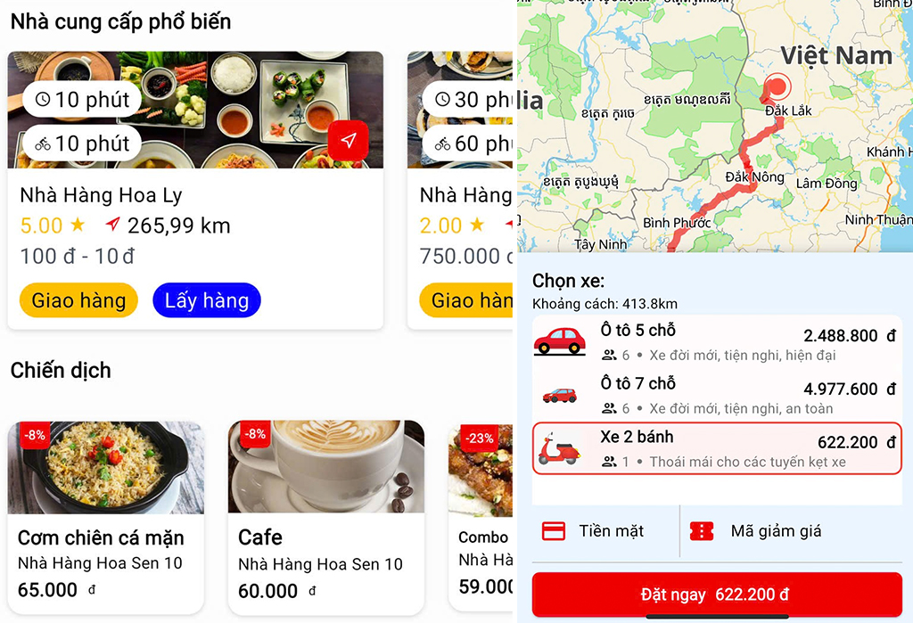 Gọi đồ ăn: Đặt món từ các nhà hàng yêu thích chỉ với vài thao tác.