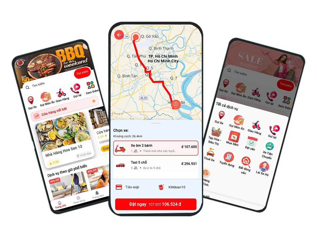 Luncurkan aplikasi multi-layanan lengkap (Transportasi, Pengiriman, Pesan Antar Makanan, Jasa Sopir...) dan siap beroperasi dengan merek Anda sendiri hanya dalam 3-5 hari.