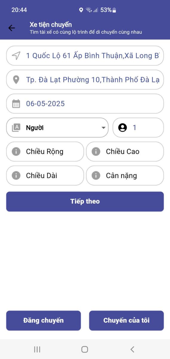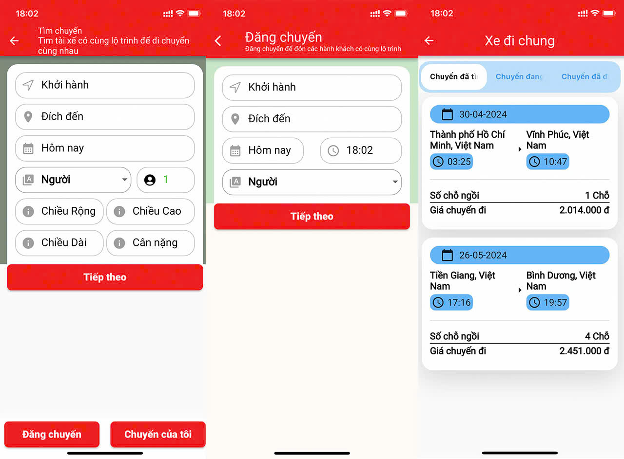 Vào ứng dụng chọn chức năng “Xe tiện chuyến” để xem chức năng: