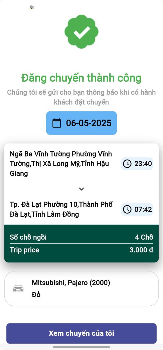 Nếu bạn có phương tiện và muốn có người cần san sẻ kinh phí hay tìm bạn đồng hành, bạn có thể đăng chuyến đi và cho hành khách quá giang.