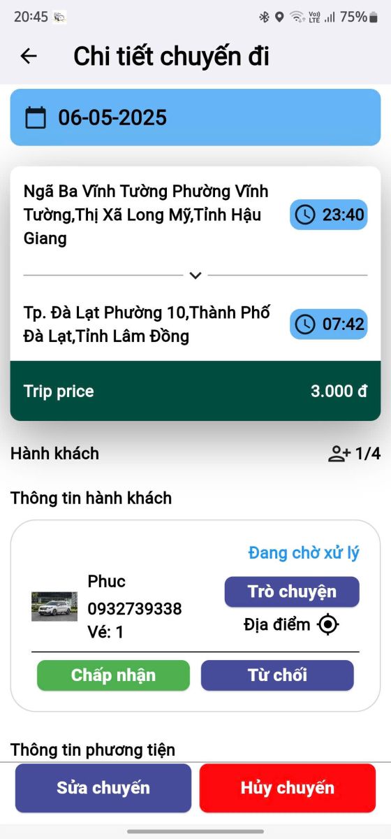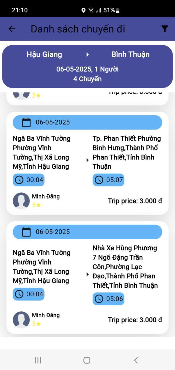 Sau khi đăng kí thành công, bạn sẽ nhận thấy danh sách chuyến đi và xem chi tiết chuyến đi như bên dưới: