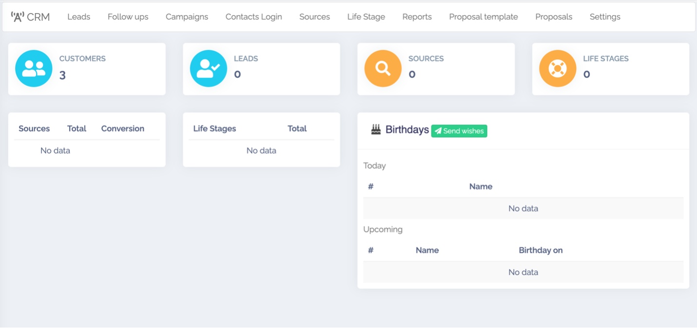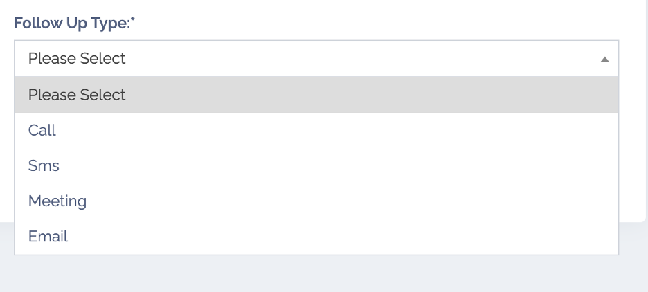 Tương tác (Follow ups): cho phép bạn tương tác với khách hàng thông qua : gọi điện thoại, sms ( tin nhắn), email, meeting.