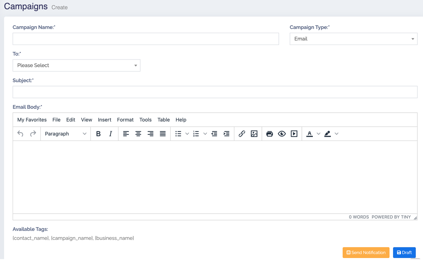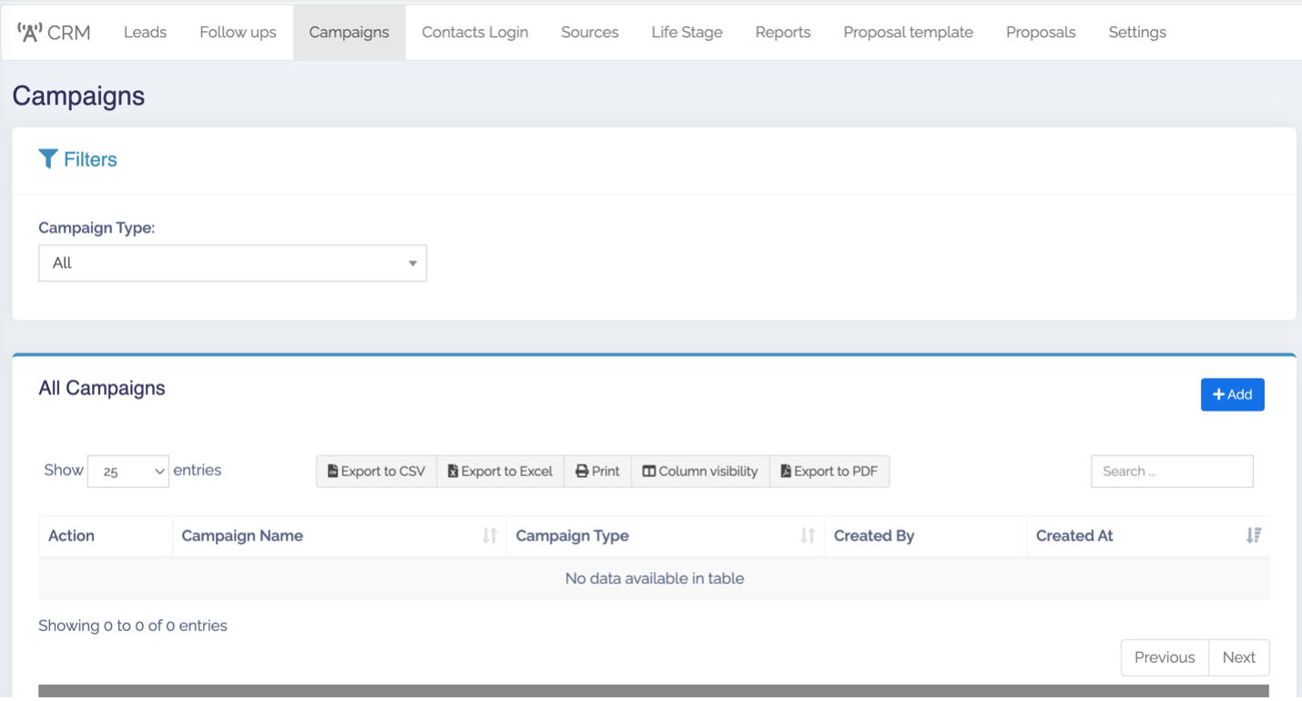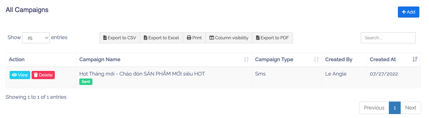 Campaigns cho phép tạo nội dung quảng cáo và gửi đến một hoặc nhiều người cùng nhóm, thuận tiện cho việc soạn nội dung phù hợp thông qua sms, email.