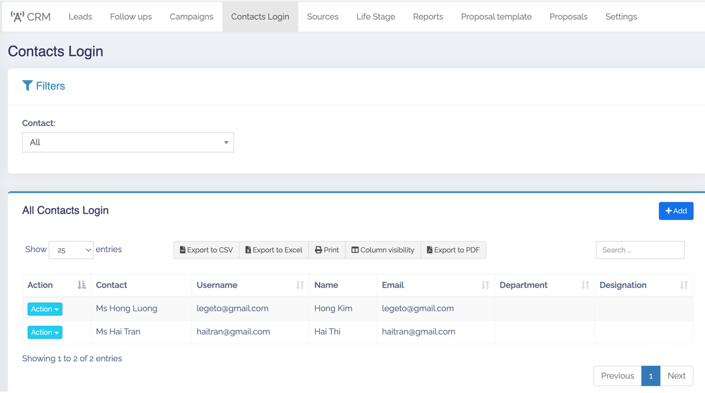 4. Contact Login: Vào CRM -> Contact Login: