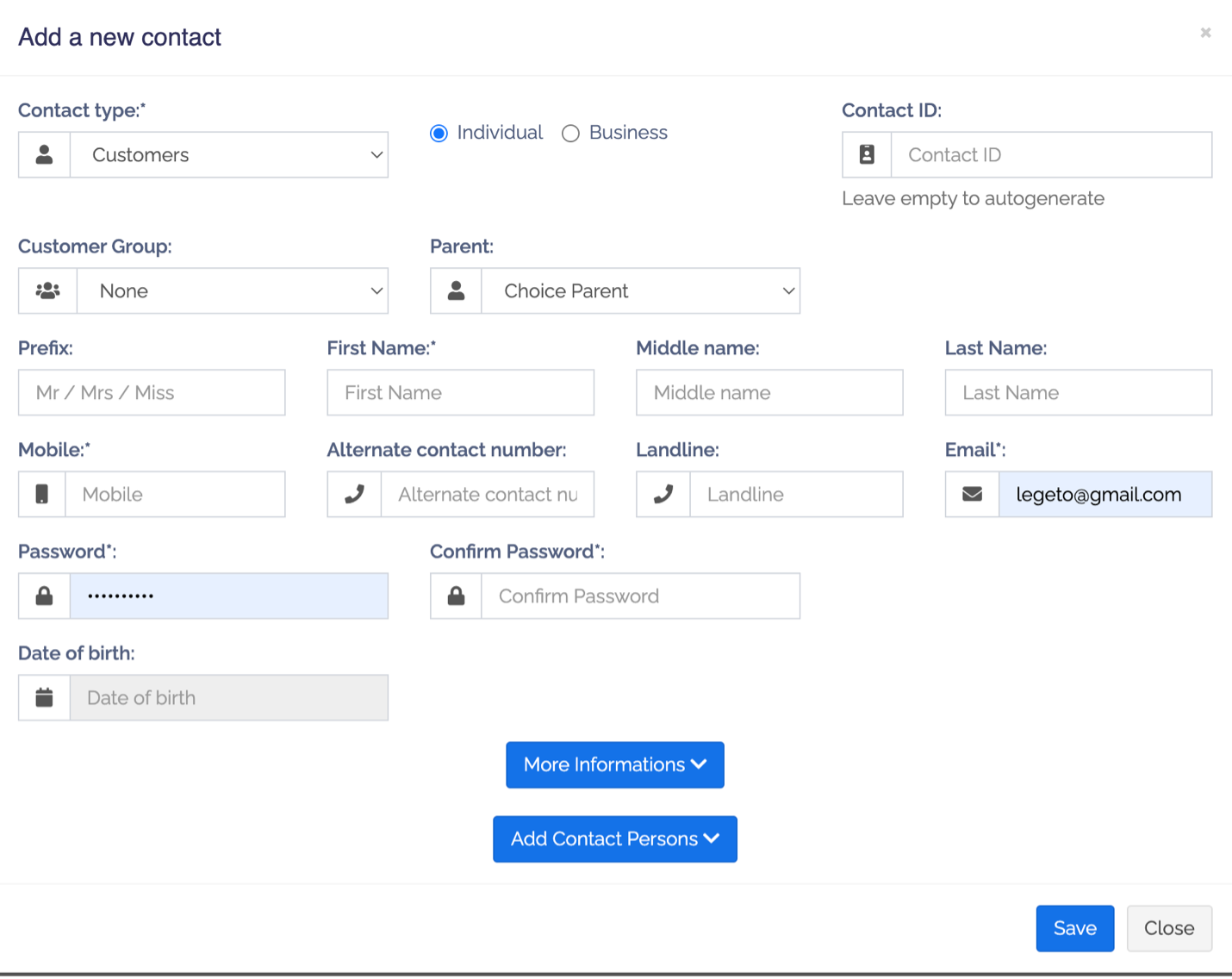 a. Thêm từ lúc tạo Contact: Contacts -> Customers -> Add