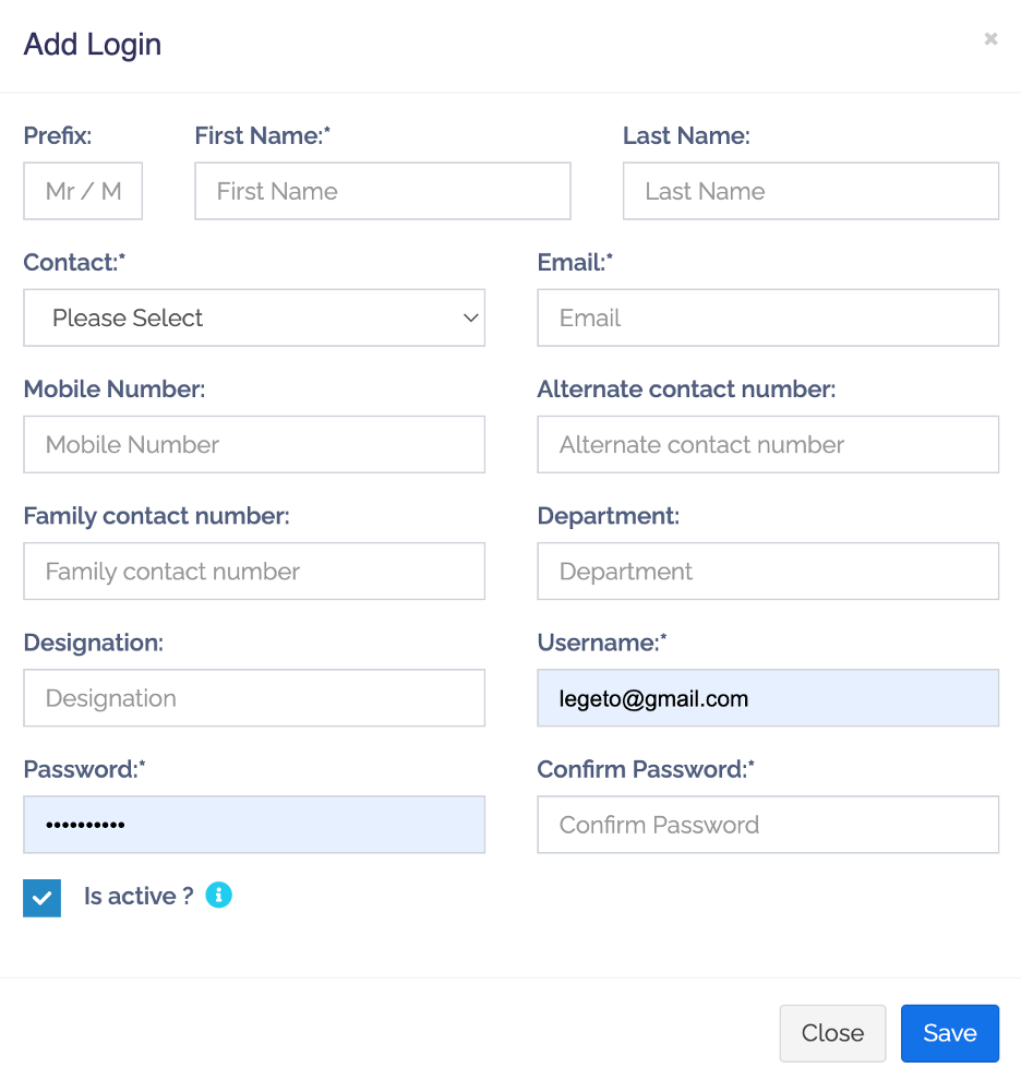Để thêm một Contact Login, ta có 2 cách thêm: