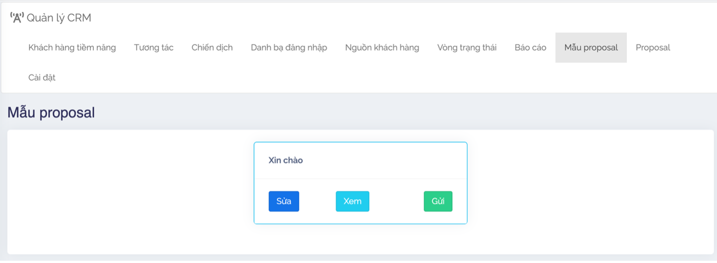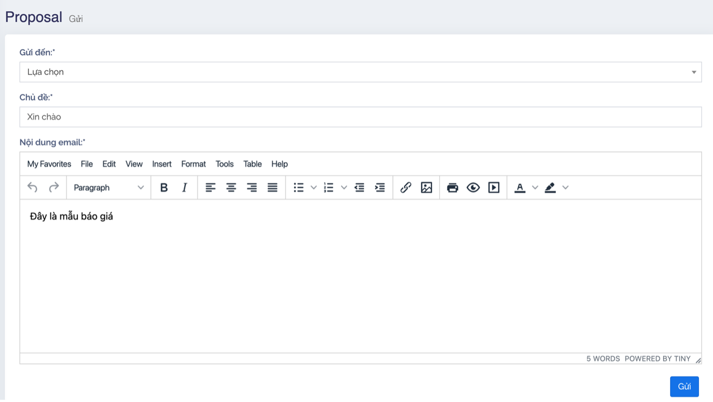 + Để gửi proposal đến một địa chỉ email nào đó, ta nhấn nút “Gửi”.