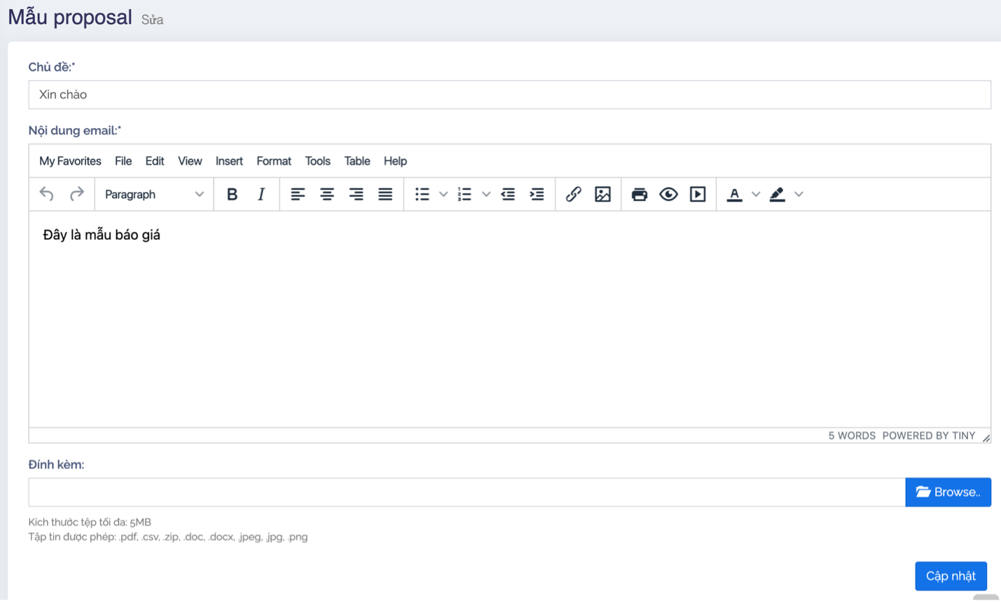Sau khi chỉnh sửa xong, bạn nhấn nút “Cập nhật” để cập nhật lại nội dung vừa được chỉnh sửa.