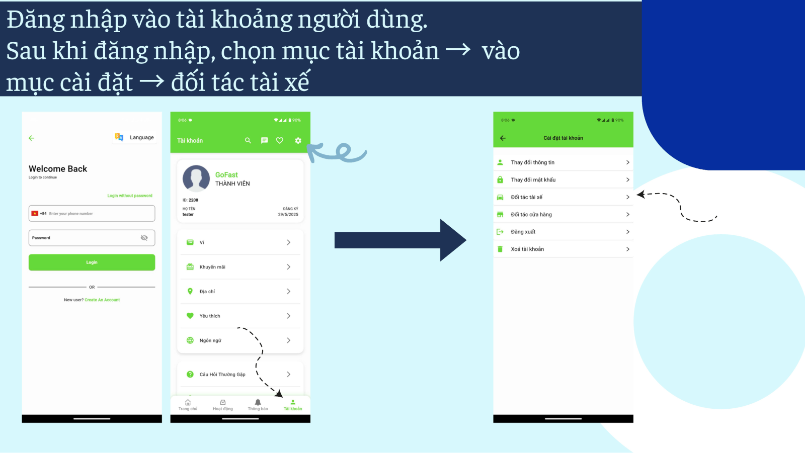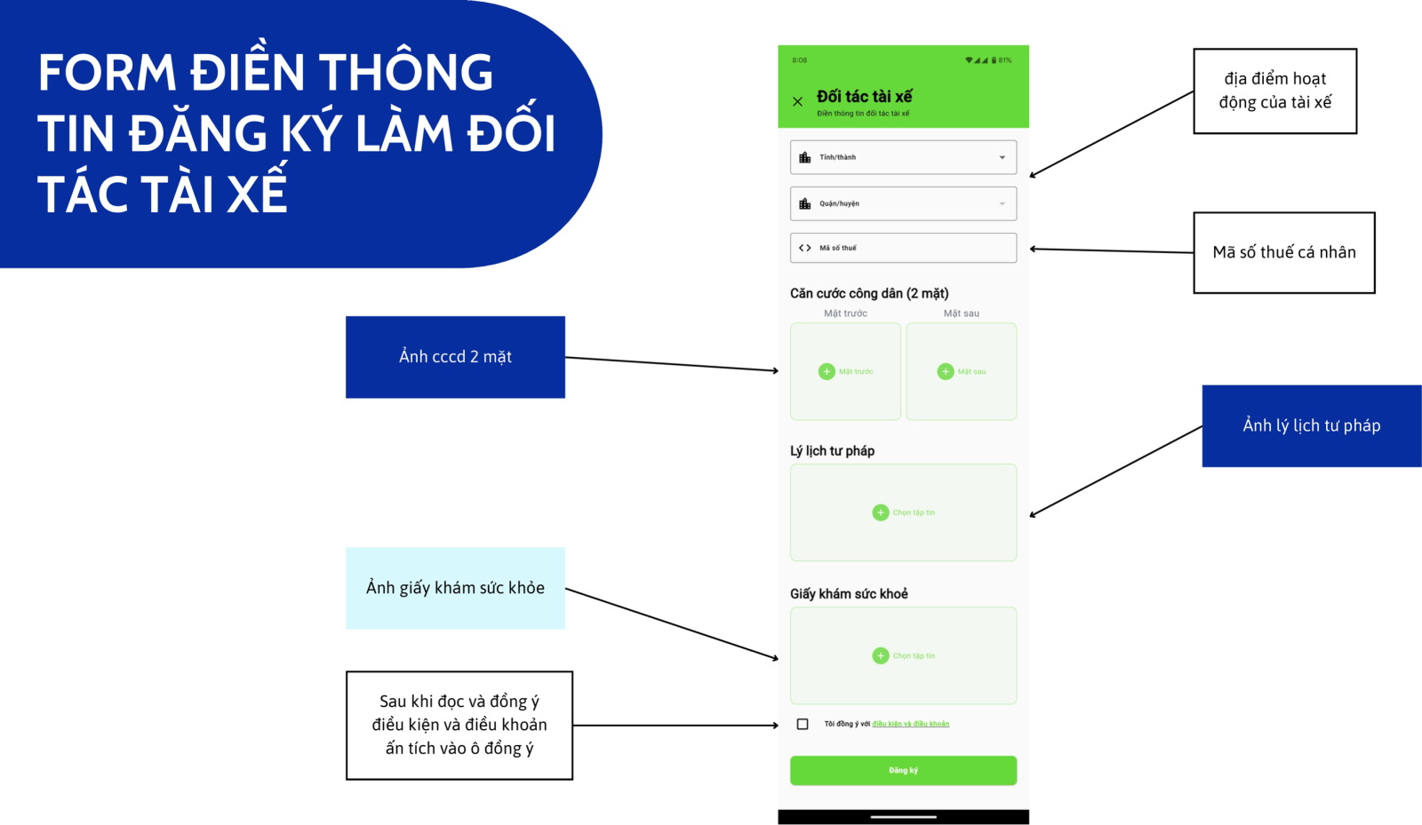 Hướng dẫn đăng kí đối tác Tài Xế và Sử dụng