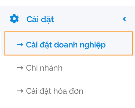 Mặc định, hệ thống sẽ ẩn tính năng ‘ Bán hàng theo hoa hồng’ này. Để hiển thị tính này này, bạn vào mục “Cài đặt” -> “Cài đặt doanh nghiệp”: