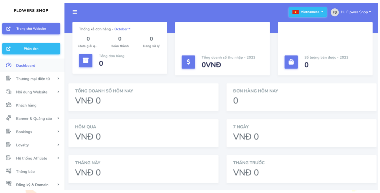 Để thực hiện được, trước tiên bạn cần login vào trang quản trị Admin với email và password bạn đã đăng kí trước đó. Bạn sẽ thấy trang Admin như bên dưới: