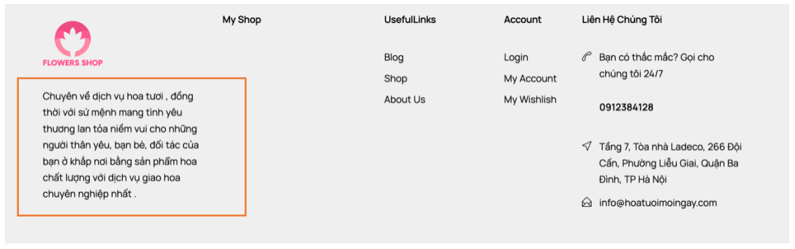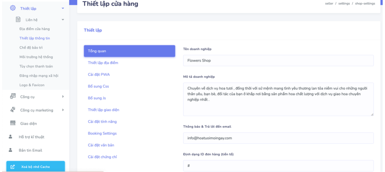 Mình thấy phần này quan trọng nhất, trước tiên website phải chứa được những thông tin của riêng shop như: địa chỉ, hiển thị địa chỉ shop trên bản đồ, thông tin cửa hàng,…