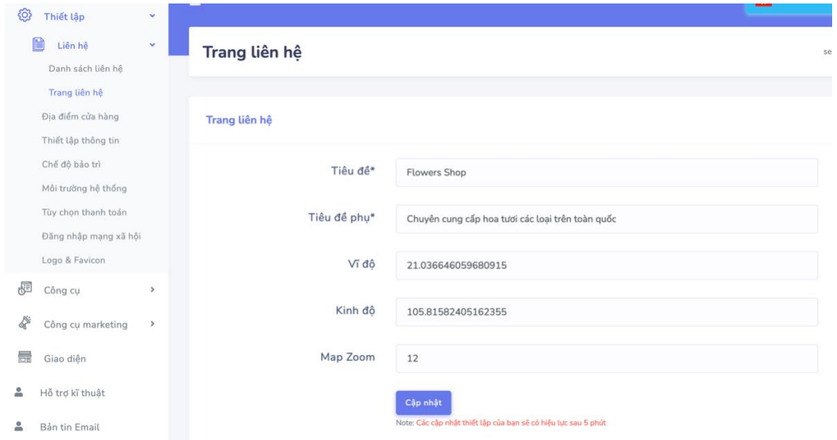 b. Hiển thị bản đồ/map cho khách hàng biết vị trí của shop trong mục Liên hệ. Vào mục Liên hệ -> Trang liên hệ: