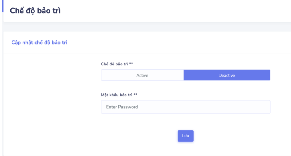 c. Chế độ bảo trì: bật/tắt chế độ bảo trì nếu cửa hàng có chính sách bảo trì hoặc không.