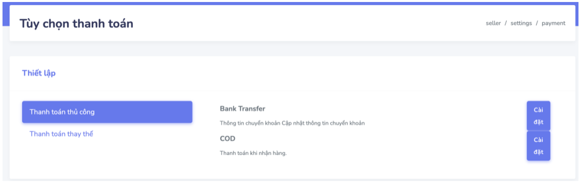 d. Tuỳ chọn thanh toán: cho phép thêm chính sách thanh toán phù hợp như: COD, chuyển khoản,…