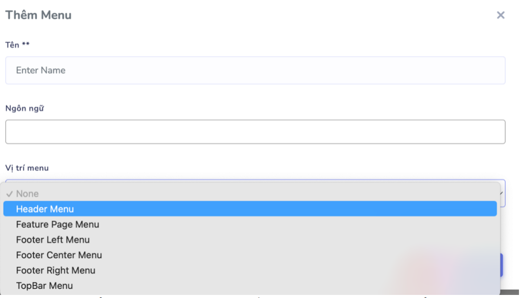 2. Thêm/Sửa/Xoá menu trên topbar, header và footer: