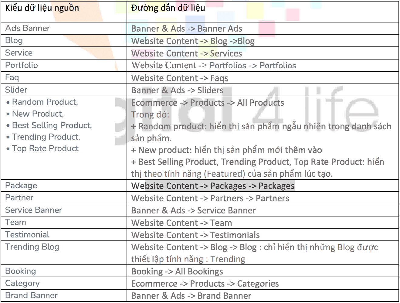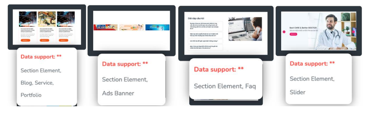 Vậy Data support là gì? Data support là kiểu dữ liệu mà section hỗ trợ như: Blog, Service, Portfolio,…