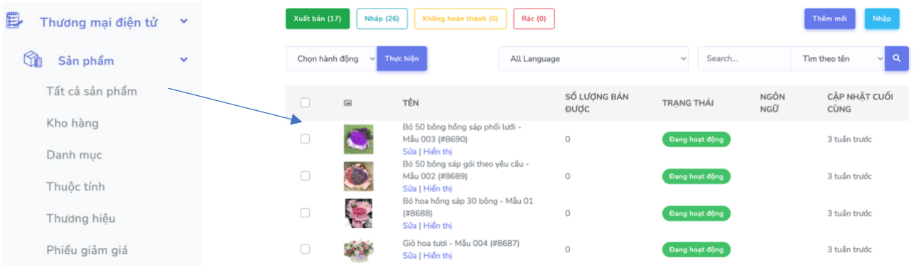 Hướng dẫn cập nhật thông tin website, sản phẩm