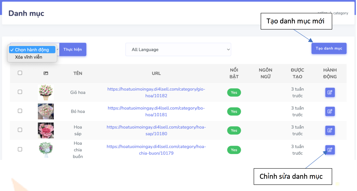 + Ảnh thu nhỏ: ảnh đại diện của danh mục.