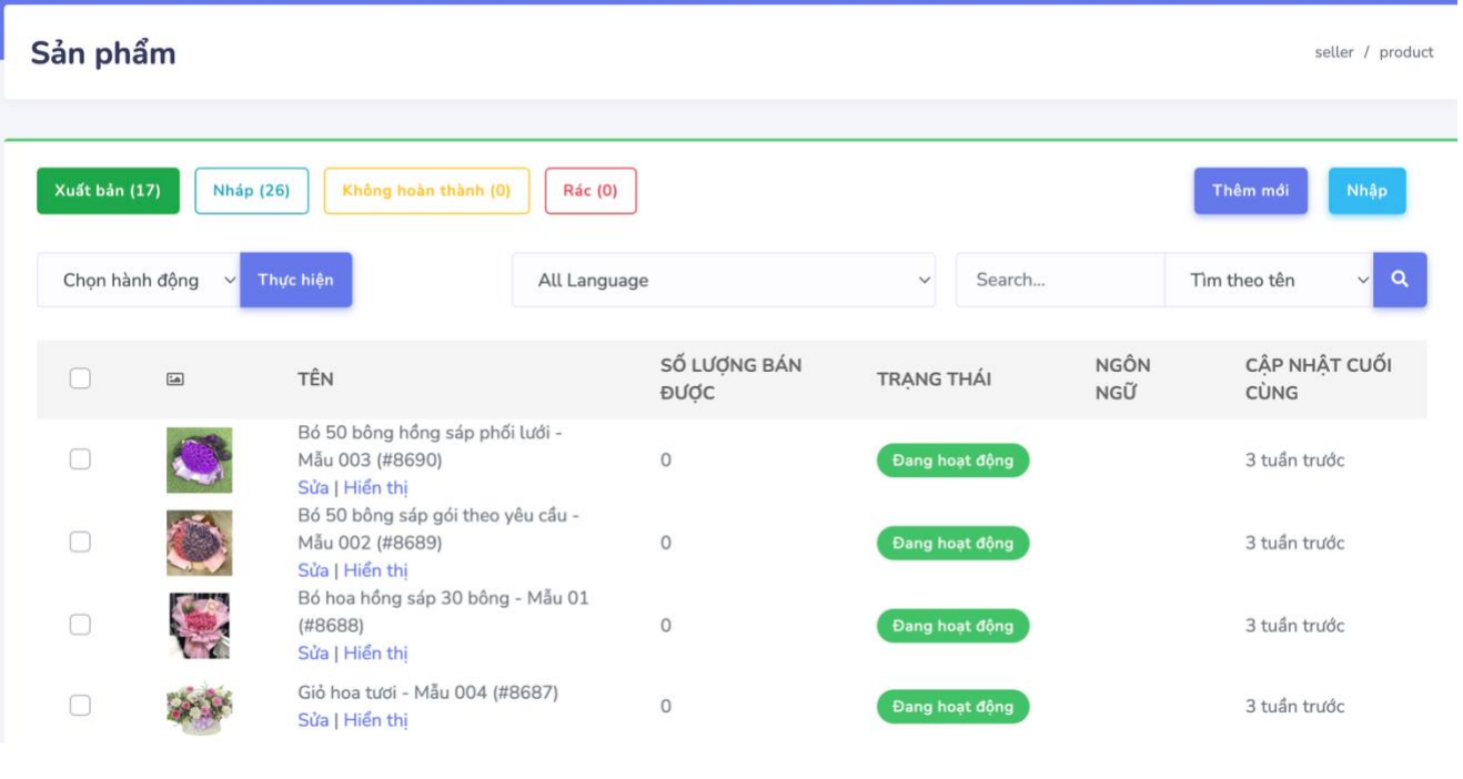 + Tất cả sản phẩm: hiển thị danh sách tất cả sản phẩm có trong cửa hàng.