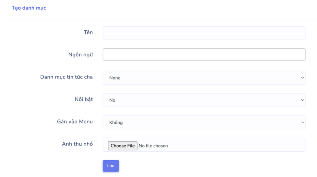 + Danh mục tin tức cha: có thể tạo danh mục trong đó có nhiều danh mục con.