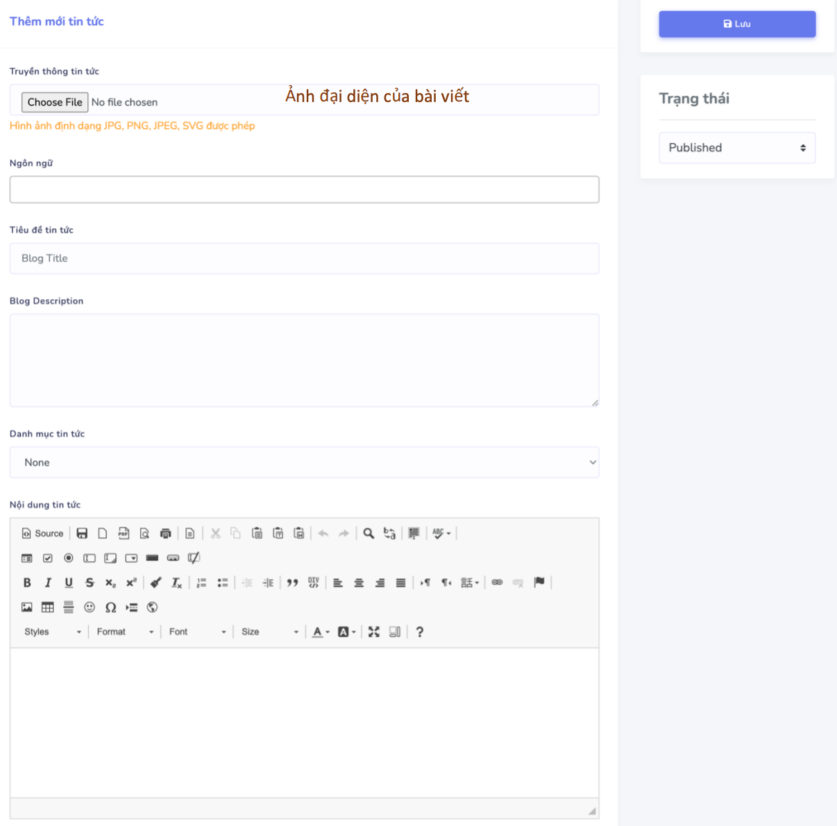 Sau khi điền tất cả các thông tin và chuyển trạng thái sang Published để xuất bản bài viết và hiển thị ra cho người đọc.