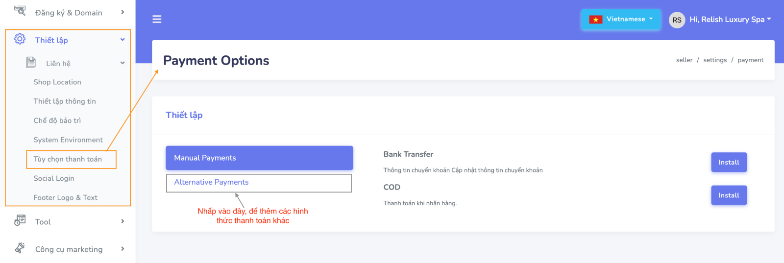 Hướng dẫn thiết lập thông tin cửa hàng và hình thức thanh toán