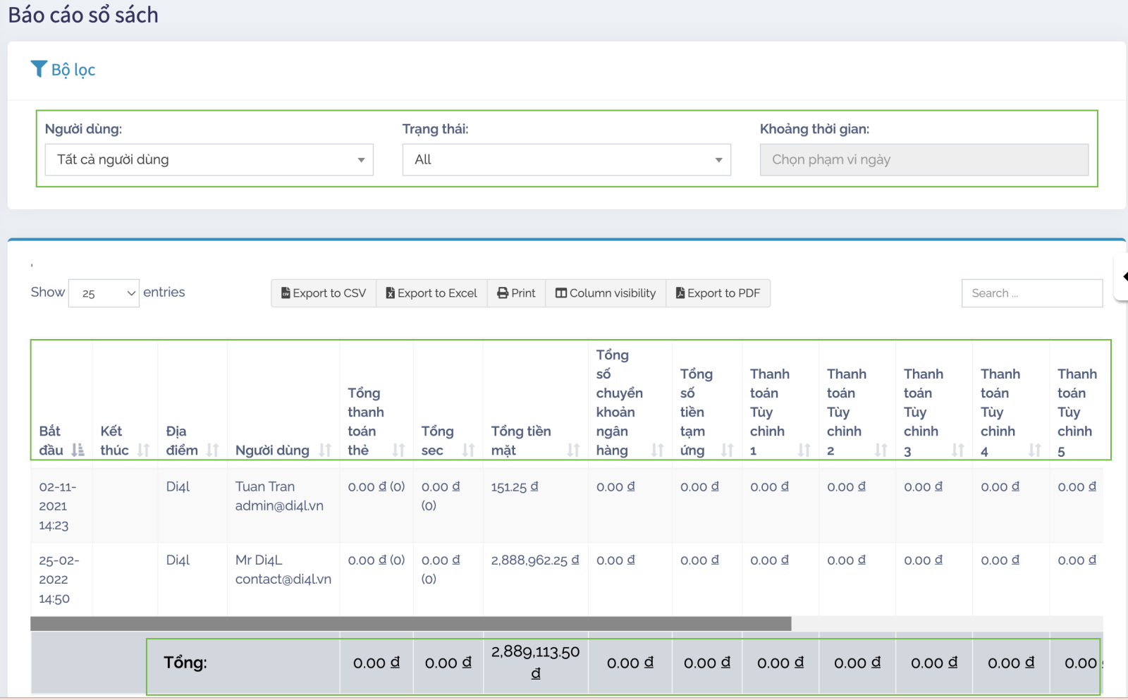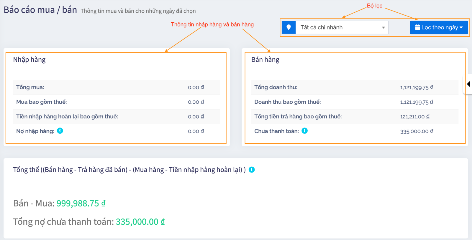 Trong một vài báo cáo có chức năng lọc giúp bạn xem tình hình kinh doanh tốt hơn.