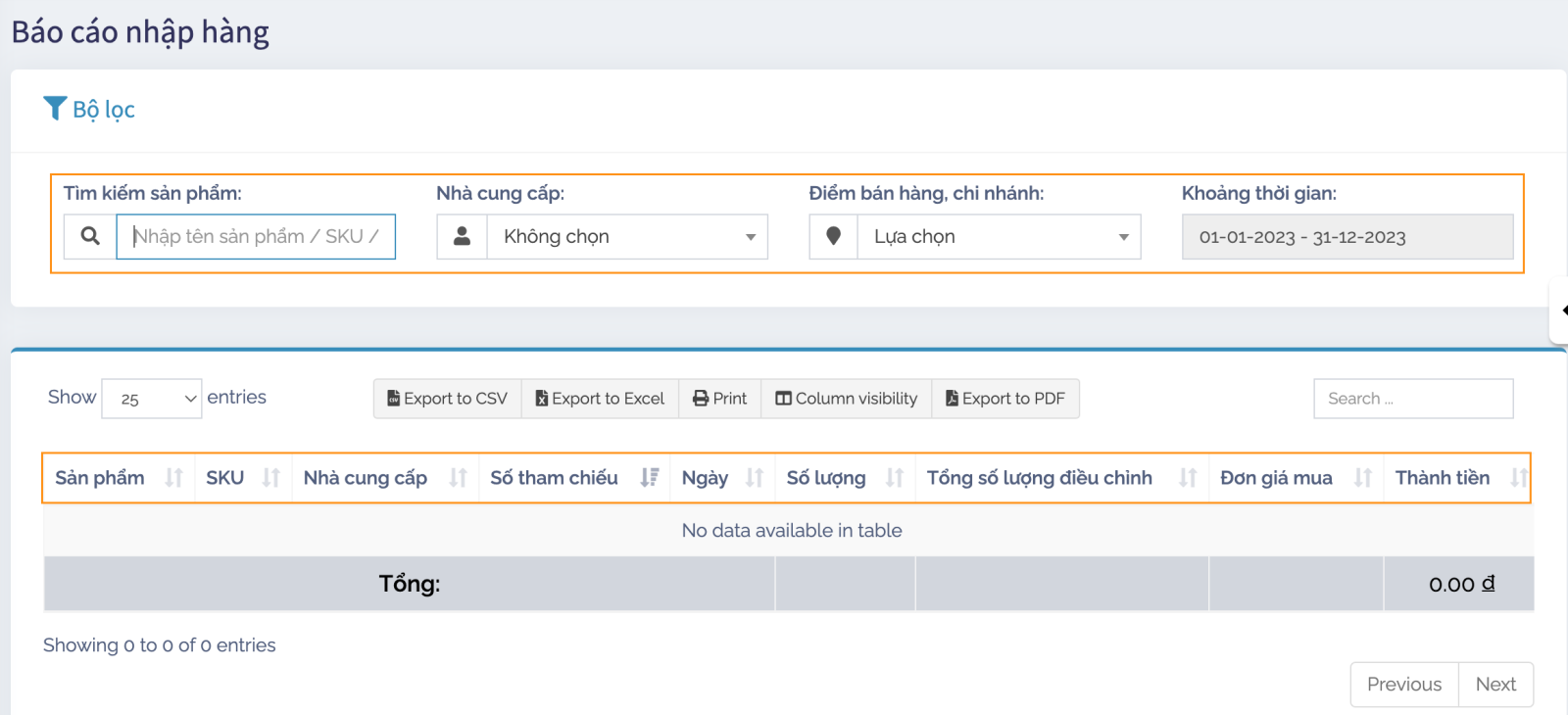 Báo cáo nhập hàng