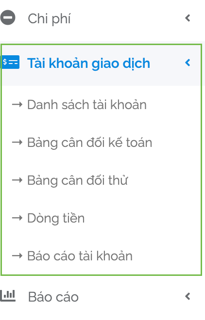 Sau khi tính năng này được bật, bạn sẽ nhìn thấy tuỳ chọn ‘Tài khoản giao dịch’ nằm bên trái như hình: