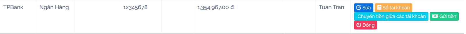 Mỗi tài khoản sẽ có chức năng: xem tất cả giao dịch phát sinh trong tài khoản, chuyển tiền qua các tài khoản khác, gửi tiền,...