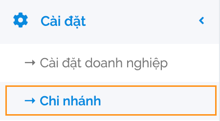Để thiết lập tài khoản thanh toán mặc định, bạn vào mục ‘Cài đặt’ -> ‘Chi nhánh’: