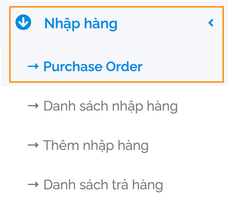Sau khi chức năng ‘Purchase Order’ đã được bật lên, bên trong Nhập Hàng, bạn sẽ tìm thấy Purchase Order (PO) như hình sau: