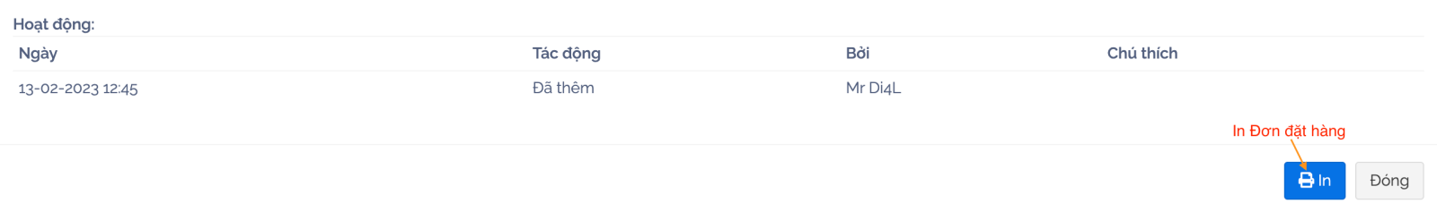 Bạn có thể in PO bằng cách nhấn nút IN.