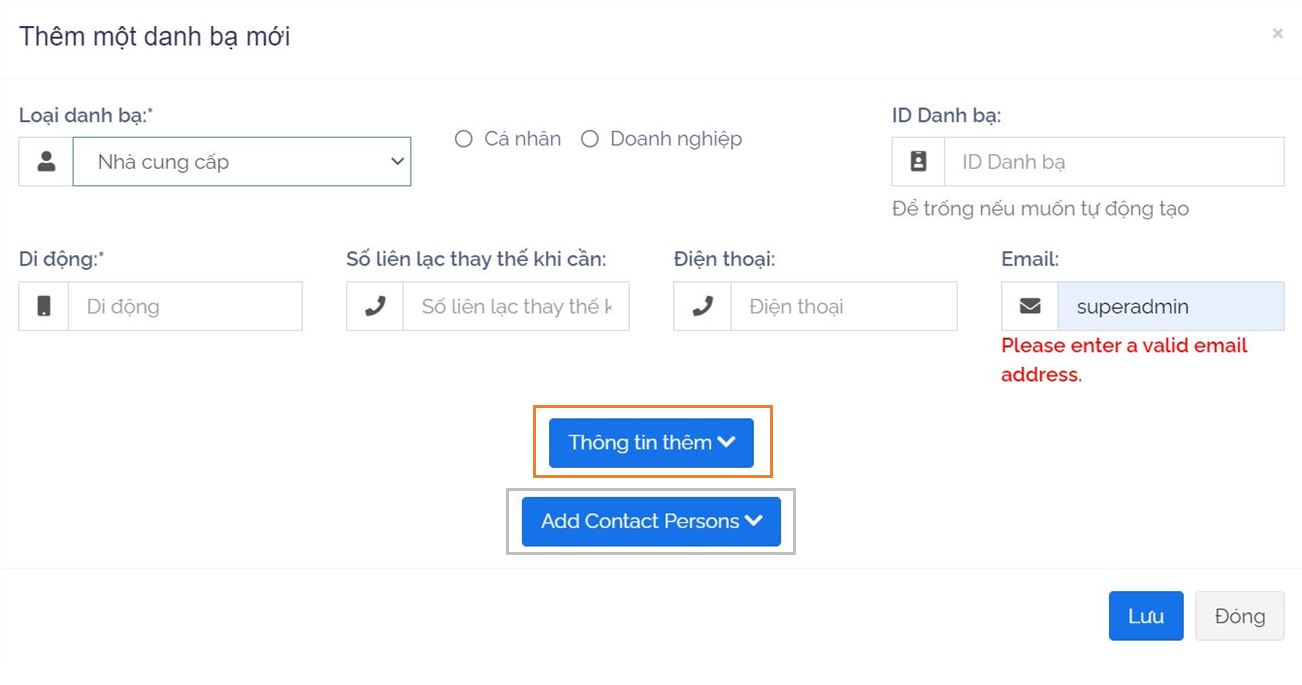 Quản lý danh bạ - Thêm danh bạ nhà cung cấp mới