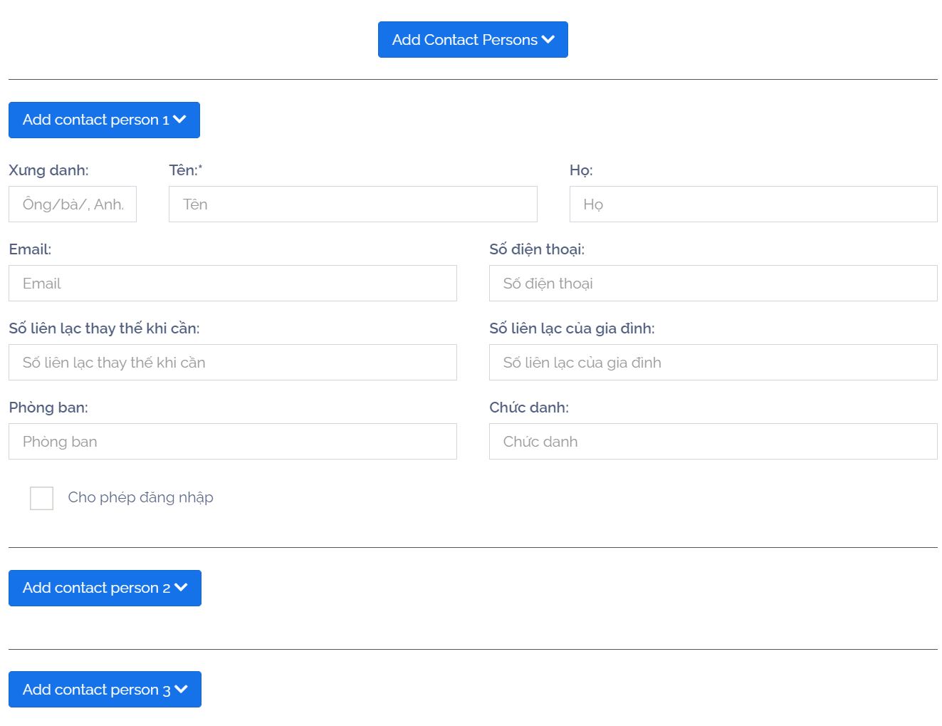 Điền thông tin bổ sung vào danh bạ bằng cách nhấp vào nút "Add contact persons":