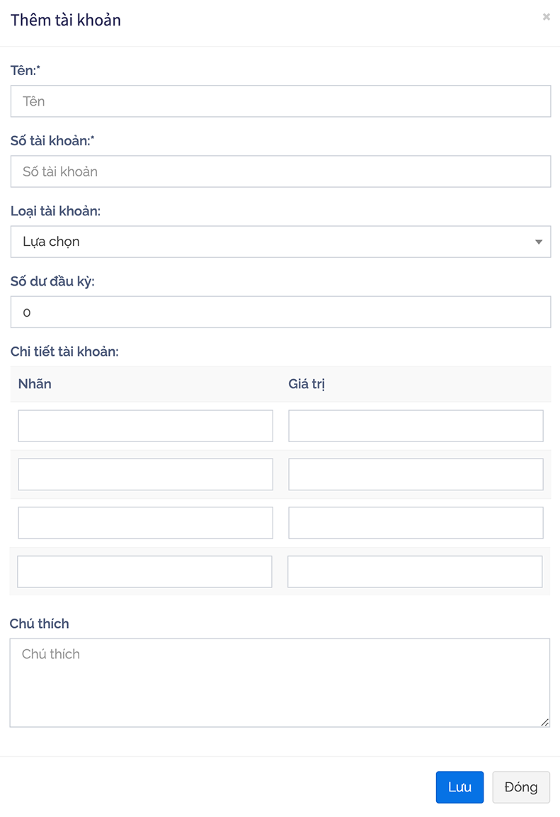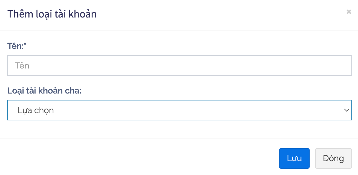 Để thêm loại tài khoản mới, bạn cần điền đầy đủ thông tin bảng bên dưới: