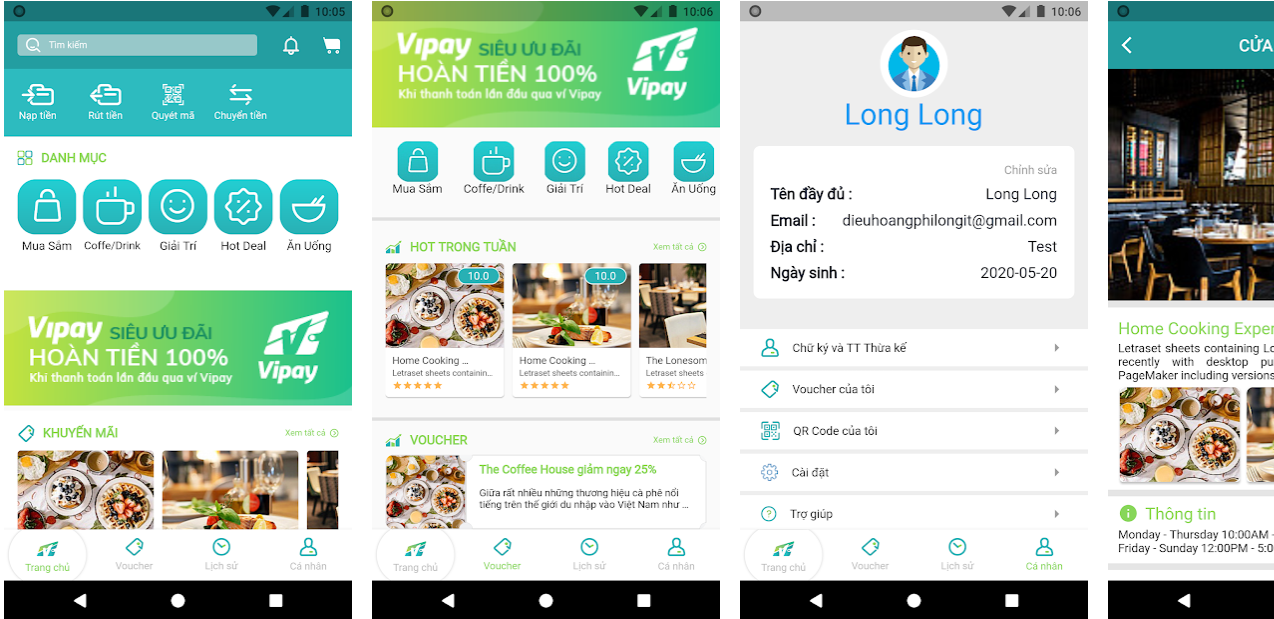 Vipay cho phép user có thể: